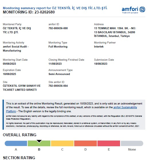 - Uluslararası Güvenilirlik: Amfori BSCI sertifikası, dünya genelinde binlerce marka ve perakendeci tarafından tanınır.
