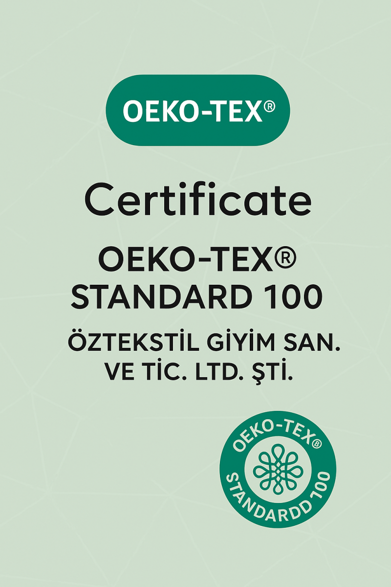 ÖZ TEKSTİL olarak, üretim süreçlerimizin bu standartlara uygun olduğunu belgelemek ve şeffaf üretim anlayışımızı müşterilerimize göstermek için bu sertifikayı aldık.