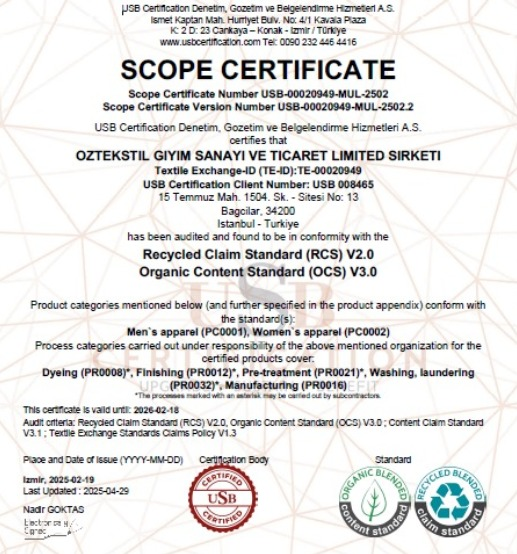 ÖZ TEKSTİL: RCS ve OCS Sertifikaları ile Sürdürülebilir ve Doğa Dostu Üretim